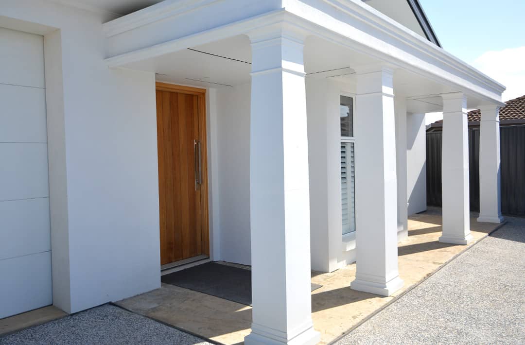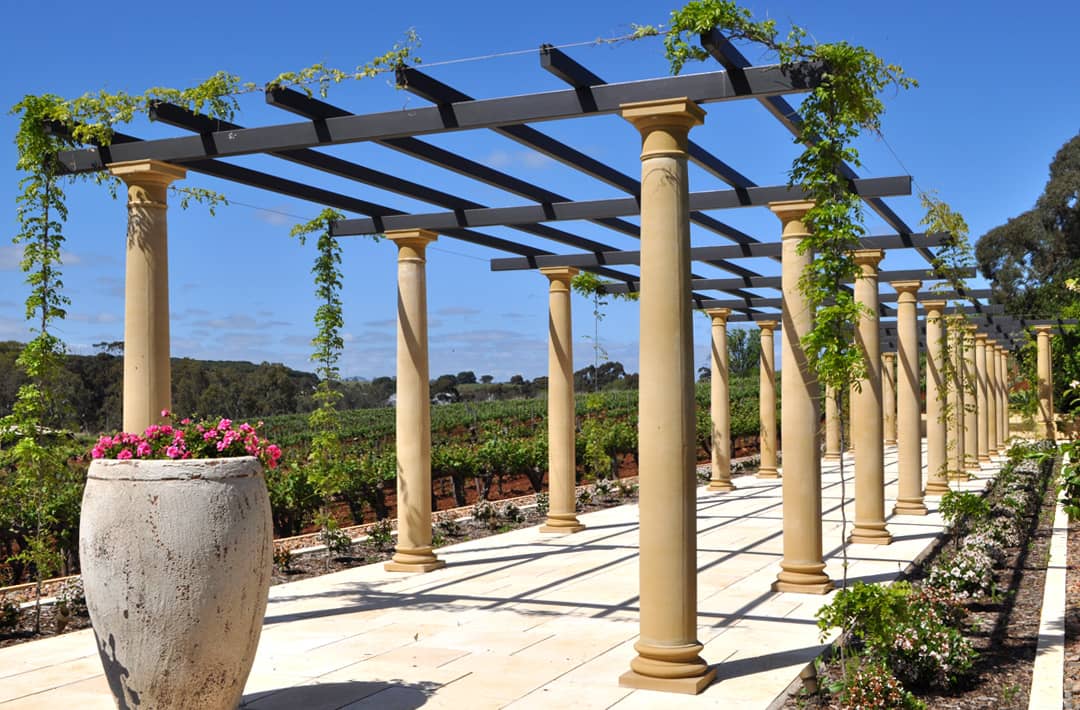 The ancient Greeks were wonderful architects. They invented three types of columns to support their buildings. There was the stylish Doric, the Ionic with its scrolls, and the fancy Corinthian. Every sandstone concrete column is made of a base, a shaft, and the capital on top. In the Ionic order, the capital is shaped like scrolls or spirals. The Doric is most easily recognized by the simple circular capitals. The Corinthian, with its offshoot the Composite, is the most ornate of the orders -elaborate capitals decorated with acanthus leaves and scrolls.